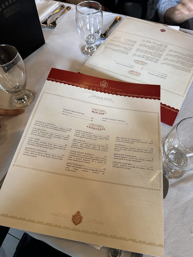Many patrons rave about their experience, with highlights such as the truffle frites and artisanal desserts like the opera cake and found eclairs that are simply "dangerous." The ambiance is cozy yet dressy, perfect for both casual lunches and sophisticated dinners.